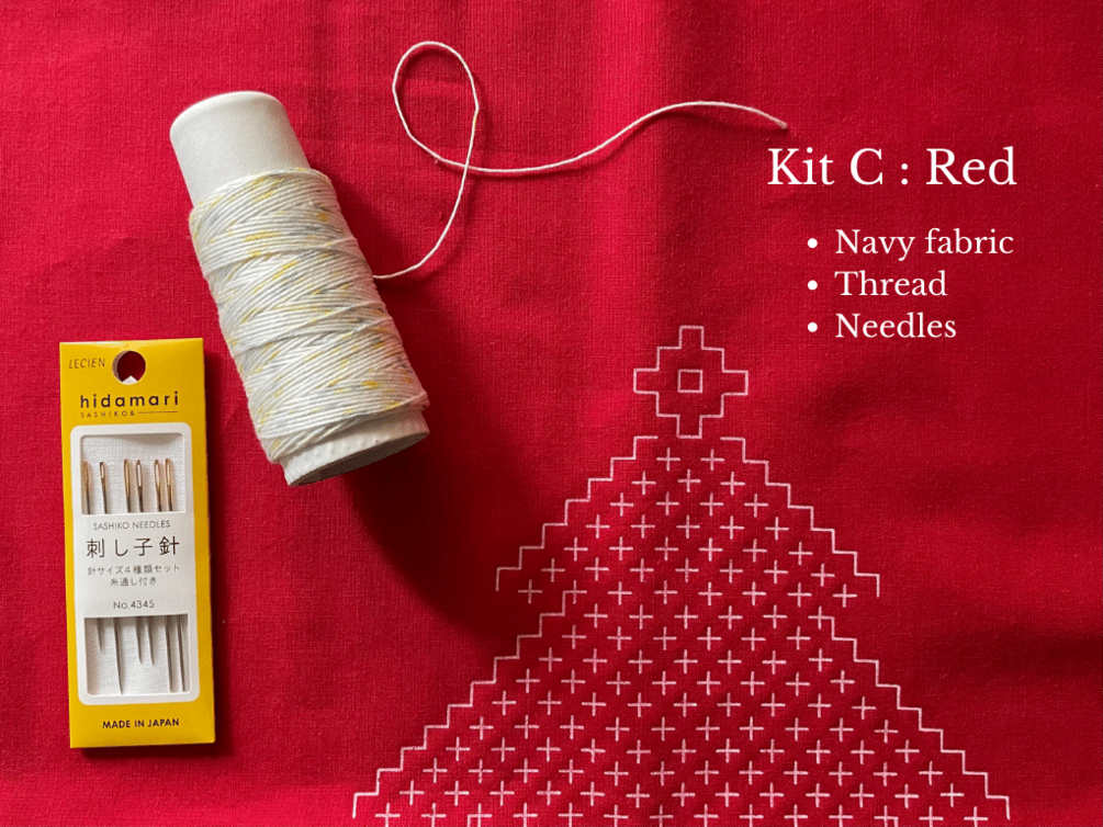 1. One preprinted cotton cloth in navy or red. (You can also choose what to include in your kit)