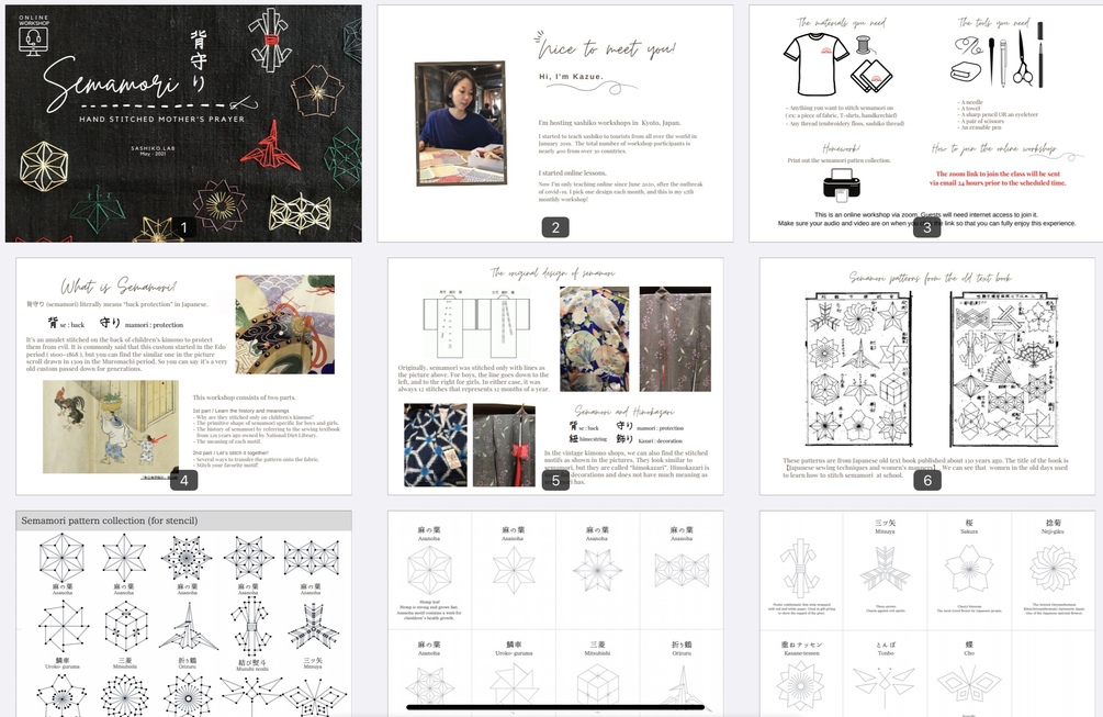 This workshop was held in May 2021 as a special workshop to celebrate my one year teaching online. I'm still getting lots of requests for this workshop and the semamori sampler booklet patterns. So I edited one of my live sessions and made 30-minute recorded class.